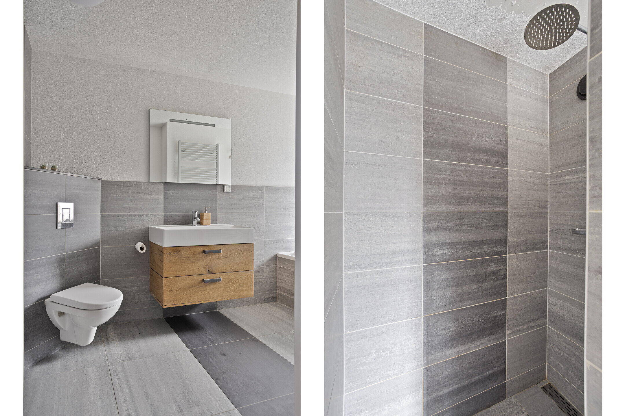 - Ligbad, toilet, wastafelmeubel, inloopdouche