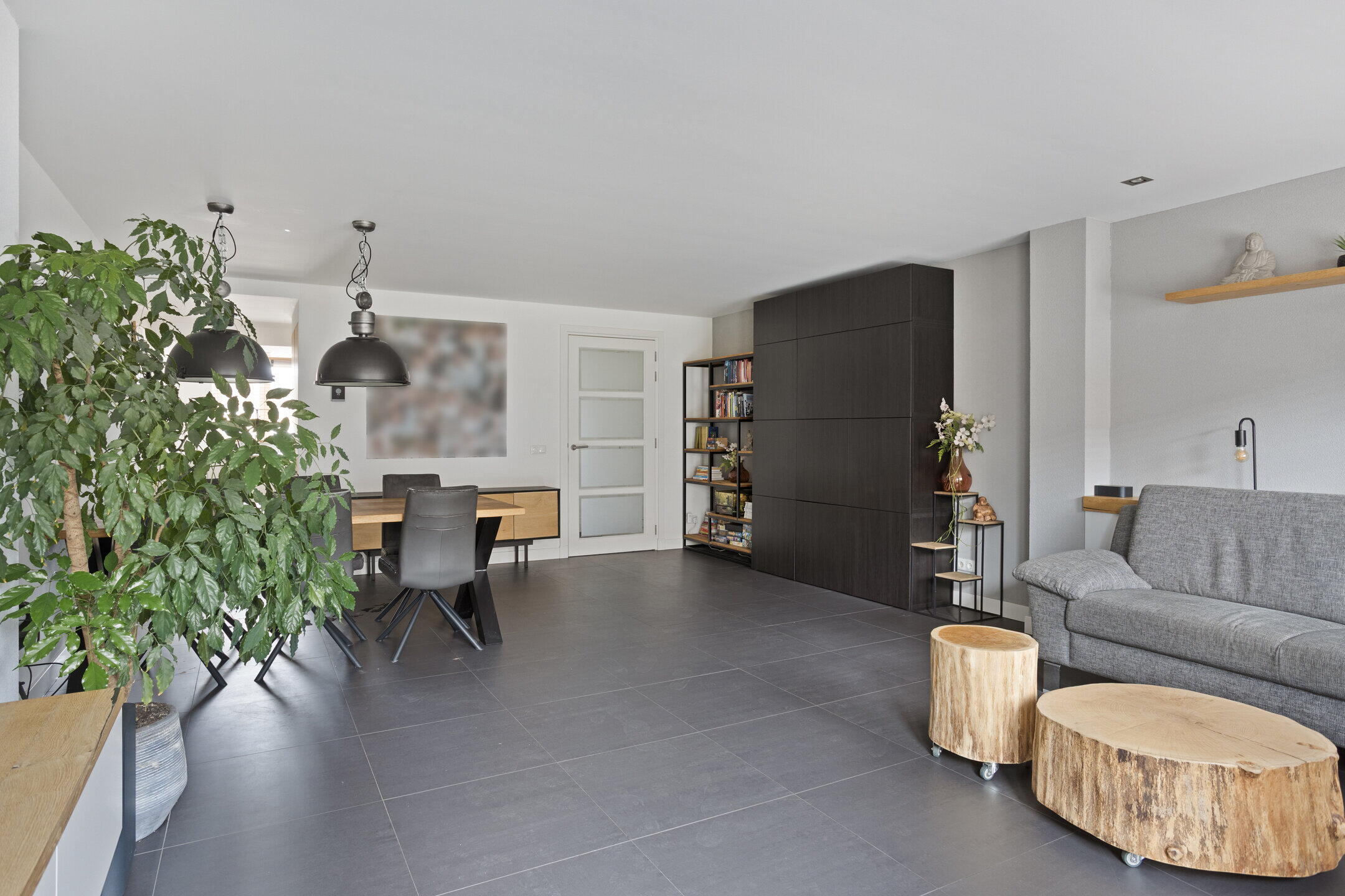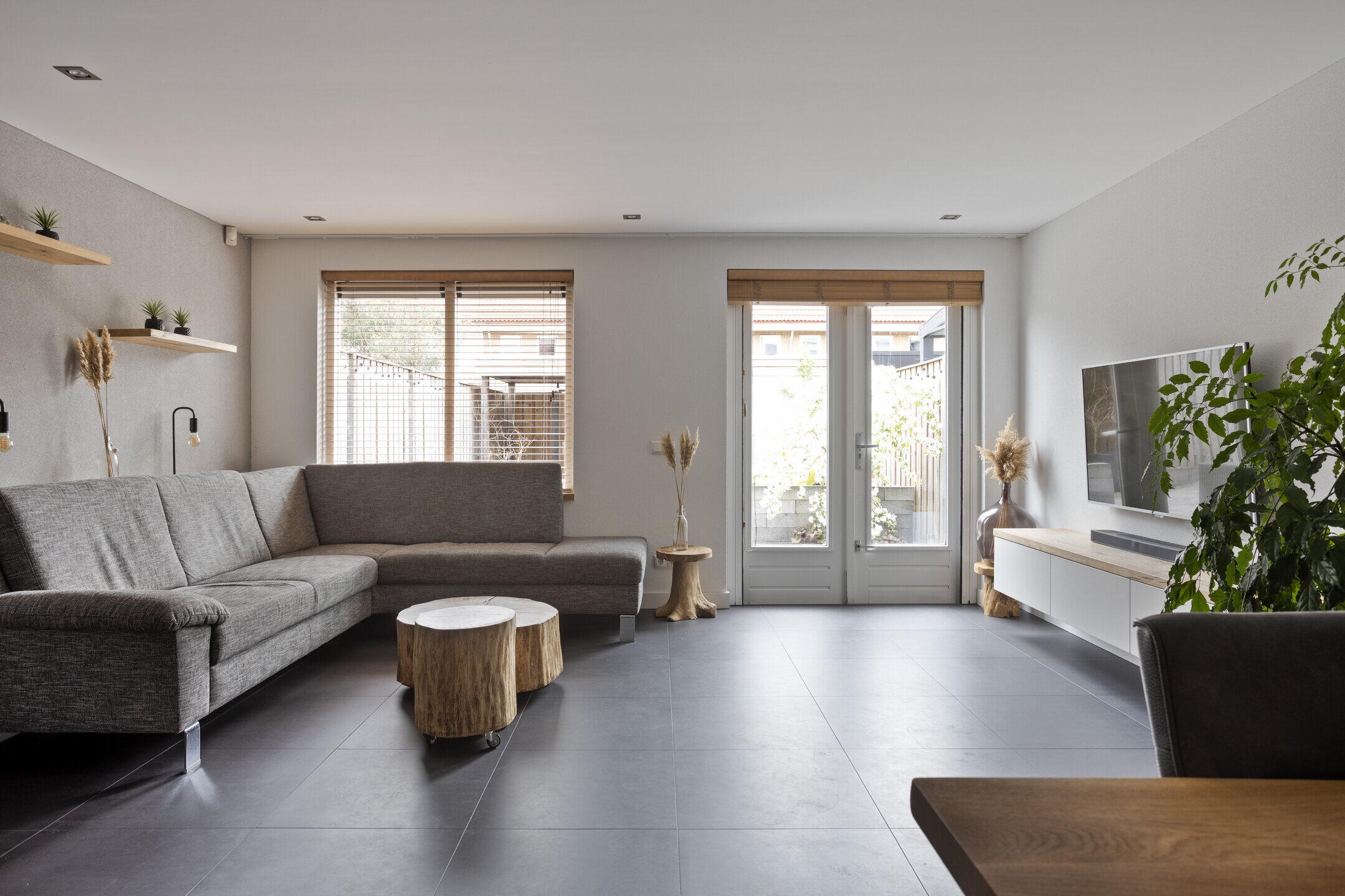 De gehele begane grond vloer is voorzien van een tegelvloer met vloerverwarming.