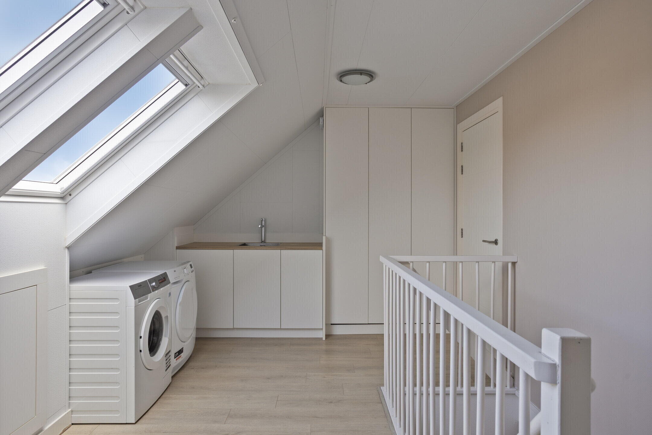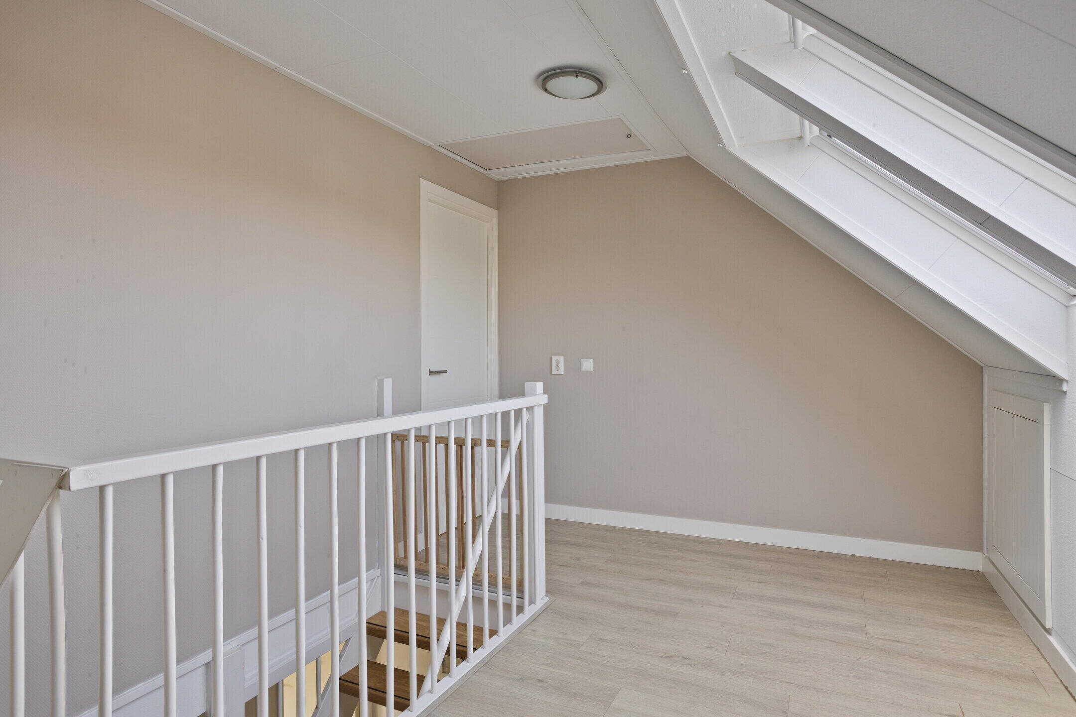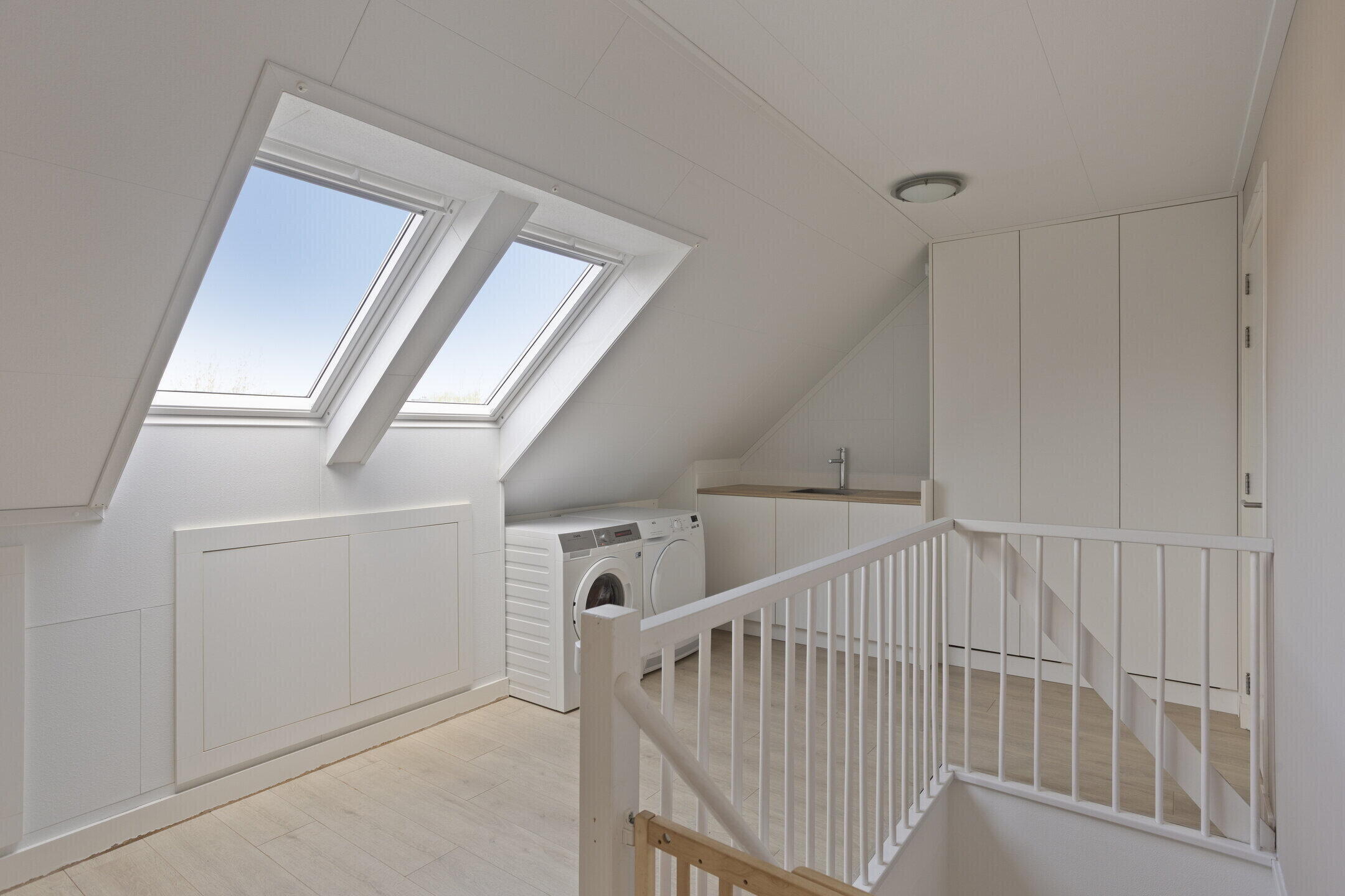 2e verdieping: vaste trap naar royale zolderverdieping. Lichte voorzolder met 2 dakramen en een aanrechtblok met warmwateraansluiting, opstelling wasmachine en droger, vaste kast voor de cv-ketel (Intergas 2011) en bergruimte. Vervolgens zijn er 2 extra (slaap)kamers met dakkapel gerealiseerd. De gehele verdieping is voorzien van een laminaatvloer. Vliering bereikbaar door middel van vlizotrap.