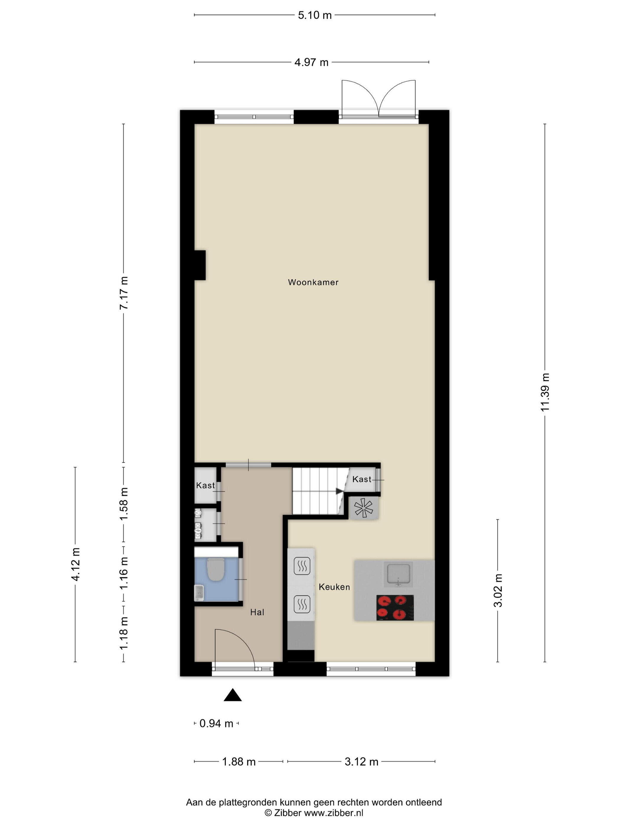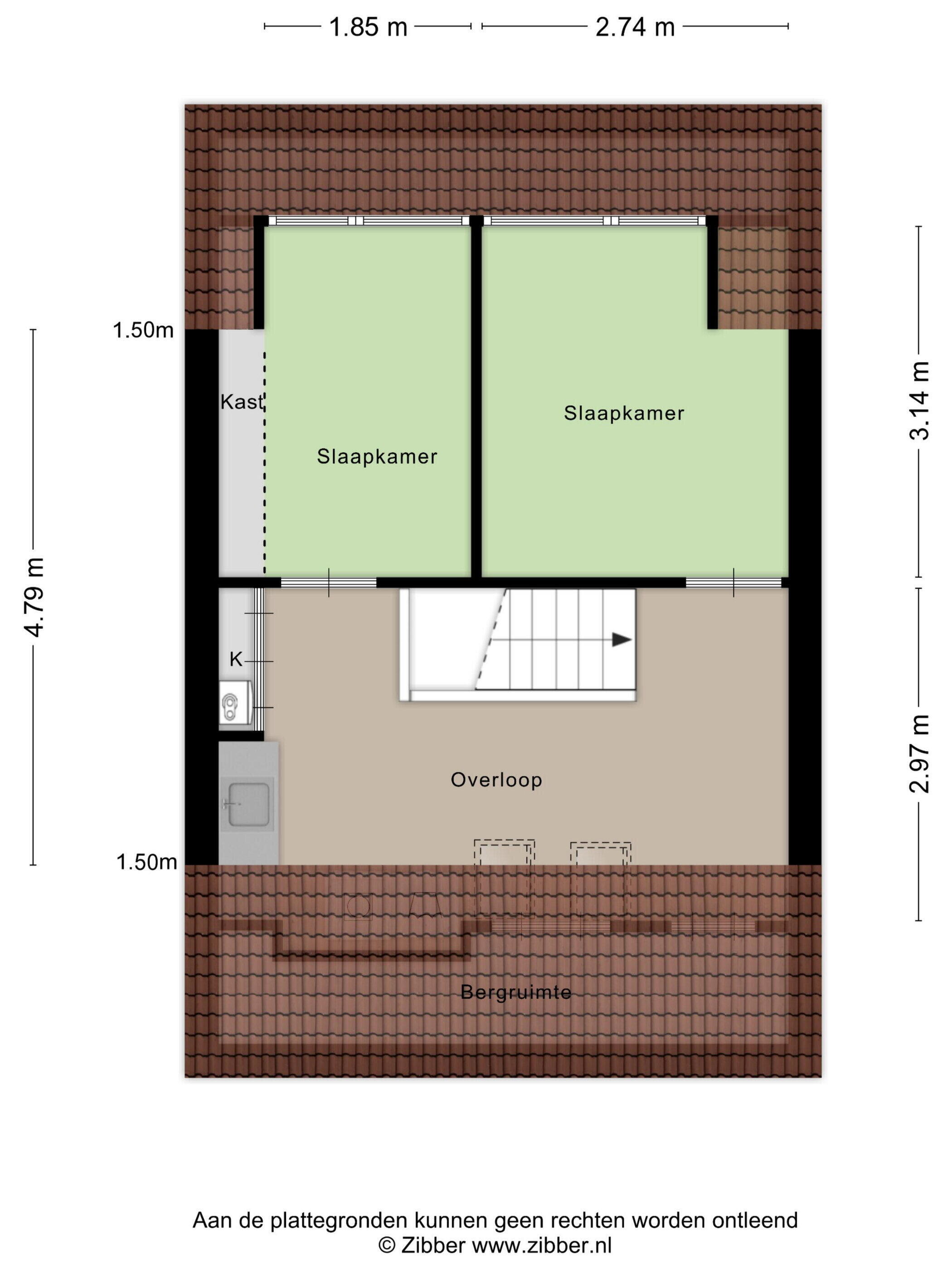 - 50 m² (9 meter diep en 5.5 meter breed)